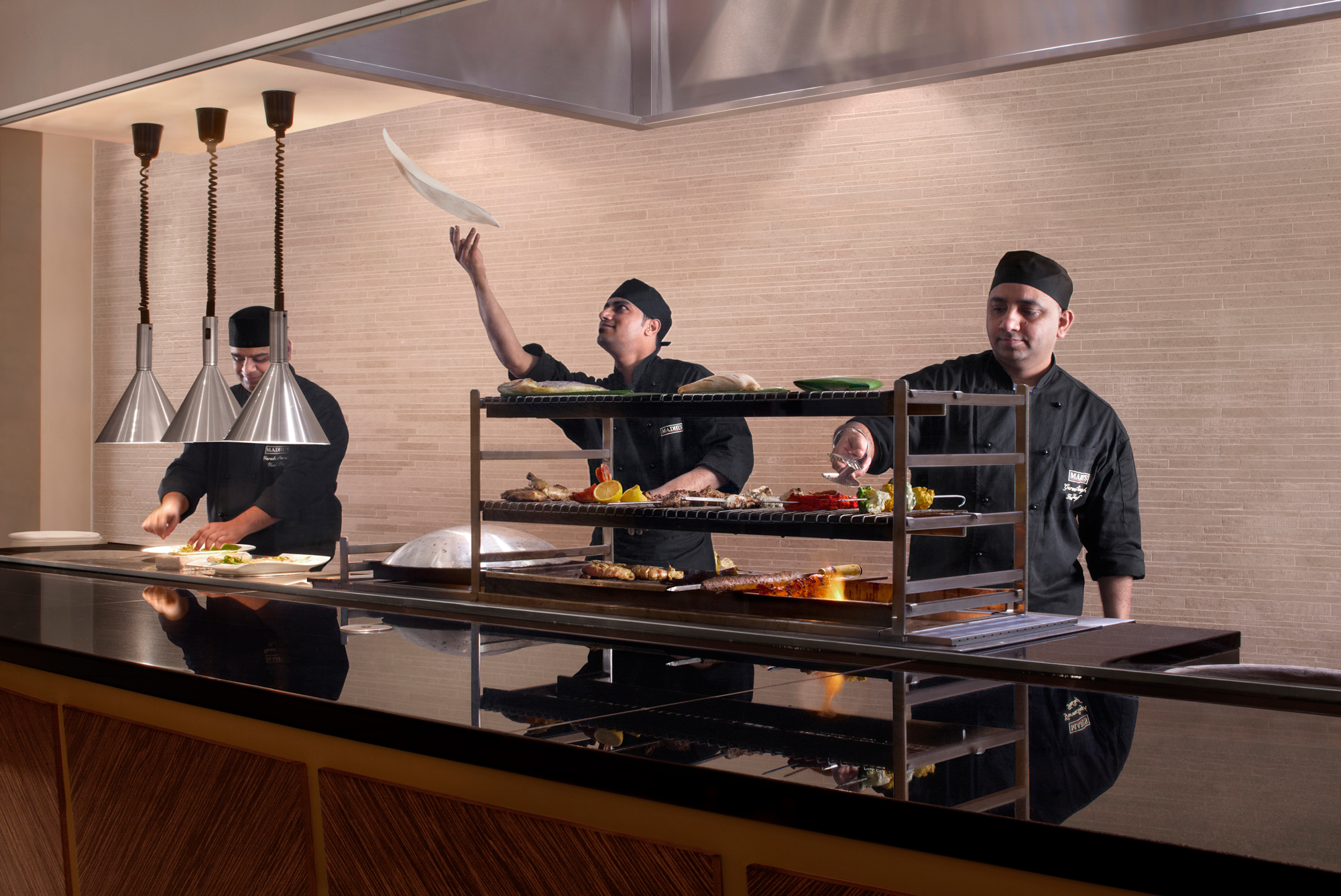 We emphasised on showcasing the chiefs and the specific cooking technics by designing an open display kitchen area with a ray of cooking facilities including a large traditional Robata Grill.