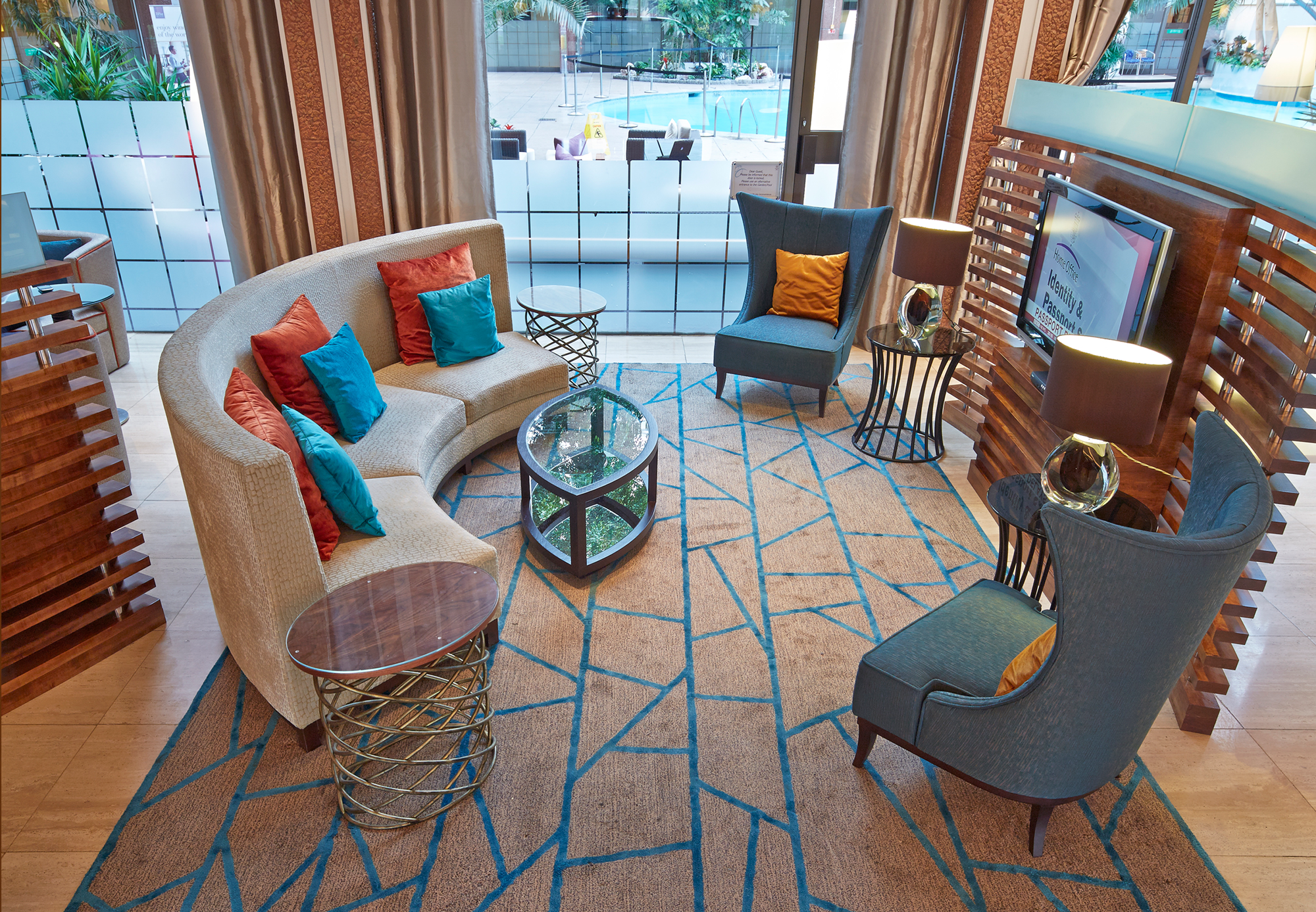 Working closely with the client we have renovated large section of the public areas including the reception, lounges, poolside seating, Wcs and a large conference centre.